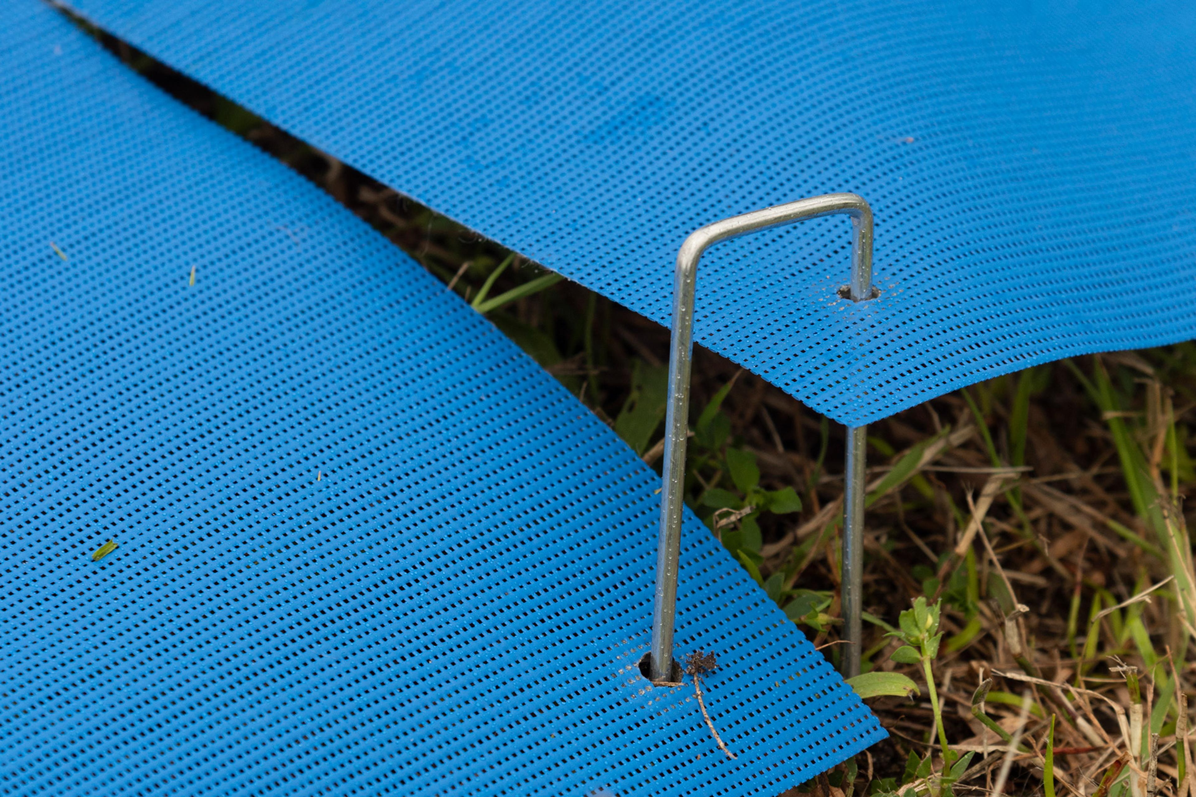 [Material] Ground base from High-tenacity polyester micro-yarn reinforcing mesh with plastic eyelets and orange recylcled army wool blankets