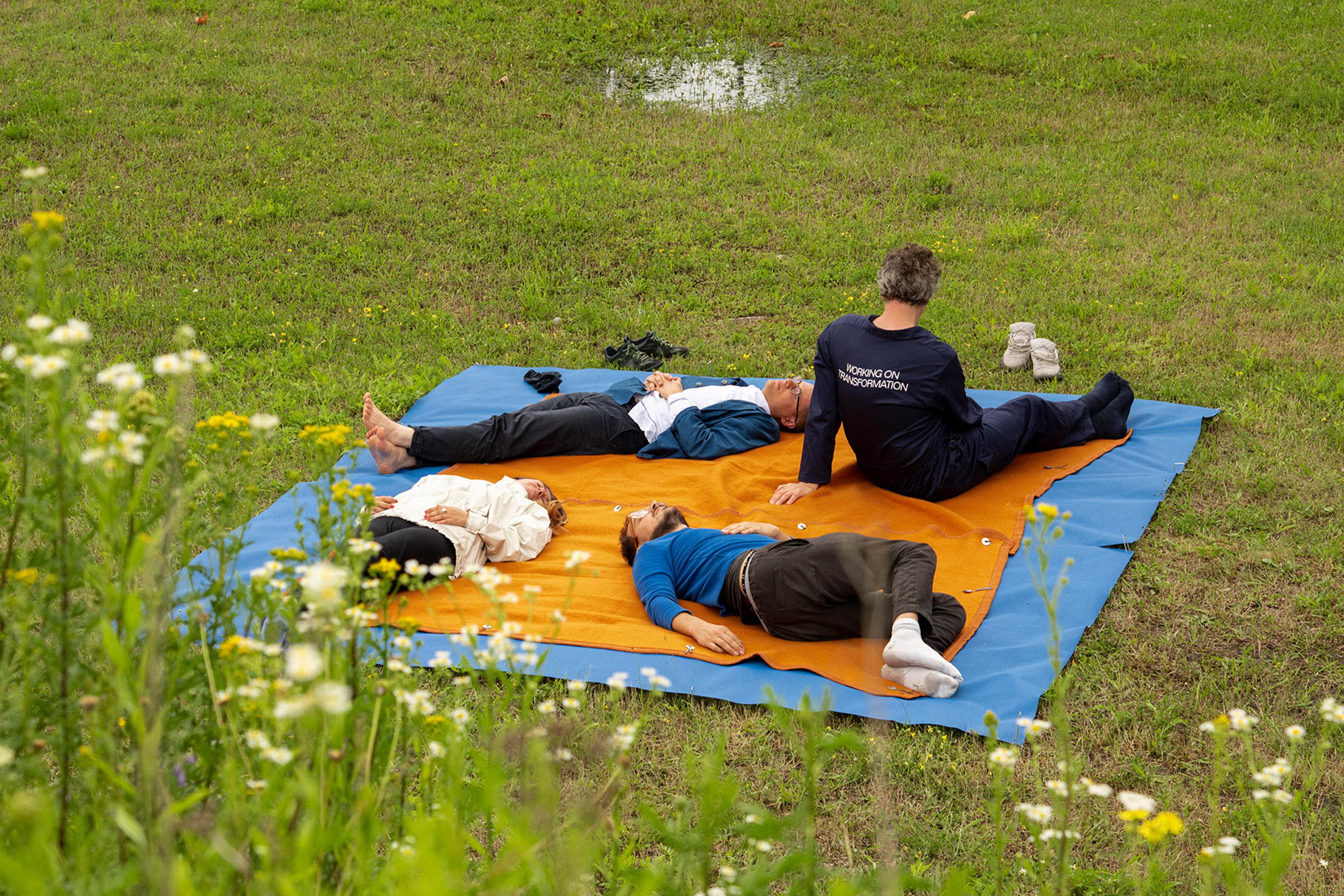Beyond drawing attention to a specific space or a precise place within it, the blanket can also shape movement patterns, behaviors, or rituals. For instance, introducing a simple rule – such as requiring everyone to remove their shoes before stepping onto it – not only heightens awareness and presence but also softens hierarchies among participants.