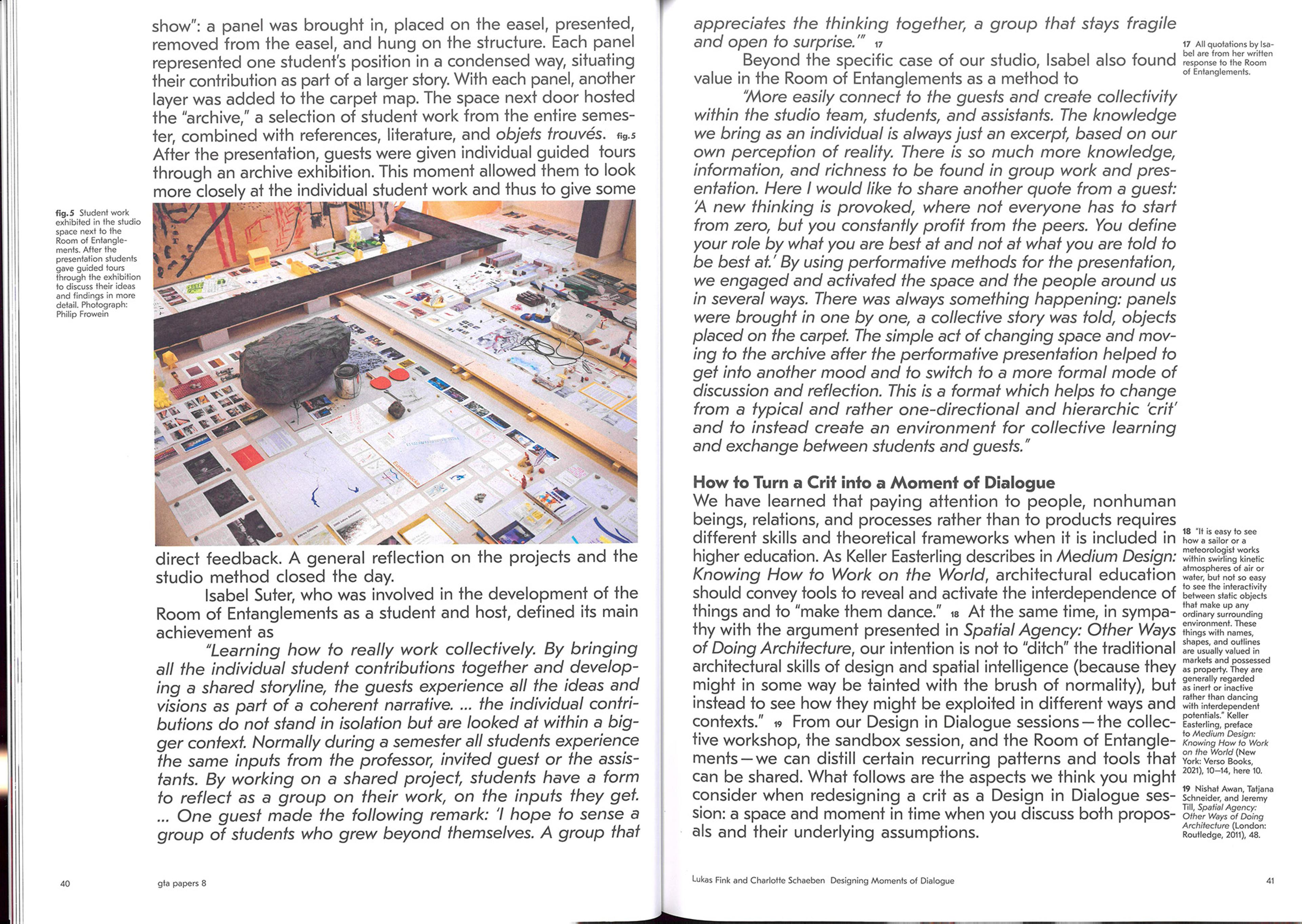 In “The Crit: gta papers 8”, NEWROPE reflects on three years of experimenting with alternative models for the crit – a key moment in architectural education. Rather than a forum for expert judgment, these revised models aim to shift the crit into a dialogue-driven exchange, valuing conversation over assessment.