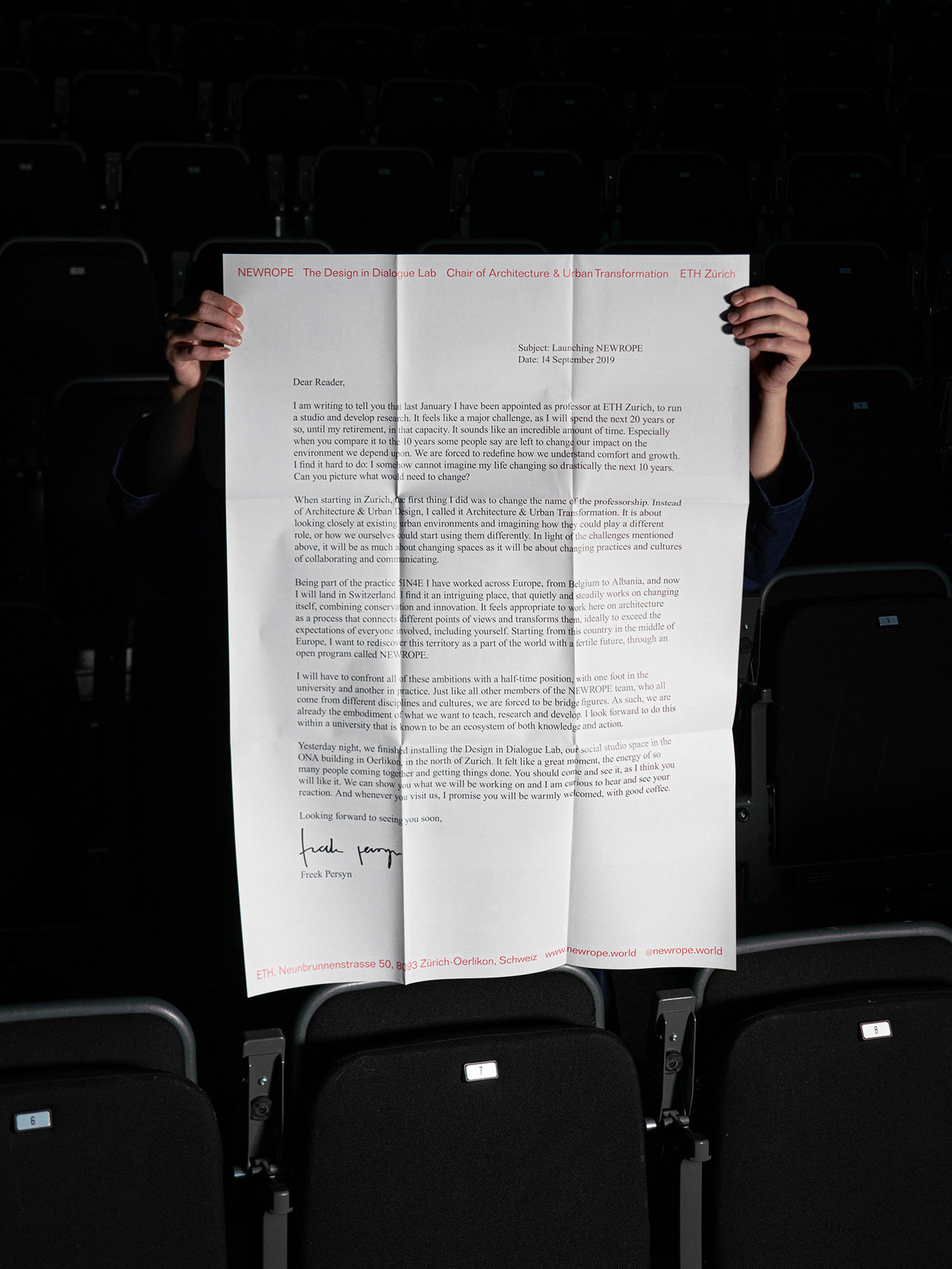 Being part of the practice 51N4E I have worked across Europe, from Belgium to Albania, and now I will land in Switzerland. I find it an intriguing place, that quietly and steadily works on changing itself, combining conservation and innovation. It feels appropriate to work here on architecture as a process that connects different points of views and transforms them, ideally to exceed the expectations of everyone involved, including yourself. Starting from this country in the middle of Europe, I want to rediscover this territory as a part of the world with a fertile future, through an open program called NEWROPE.
