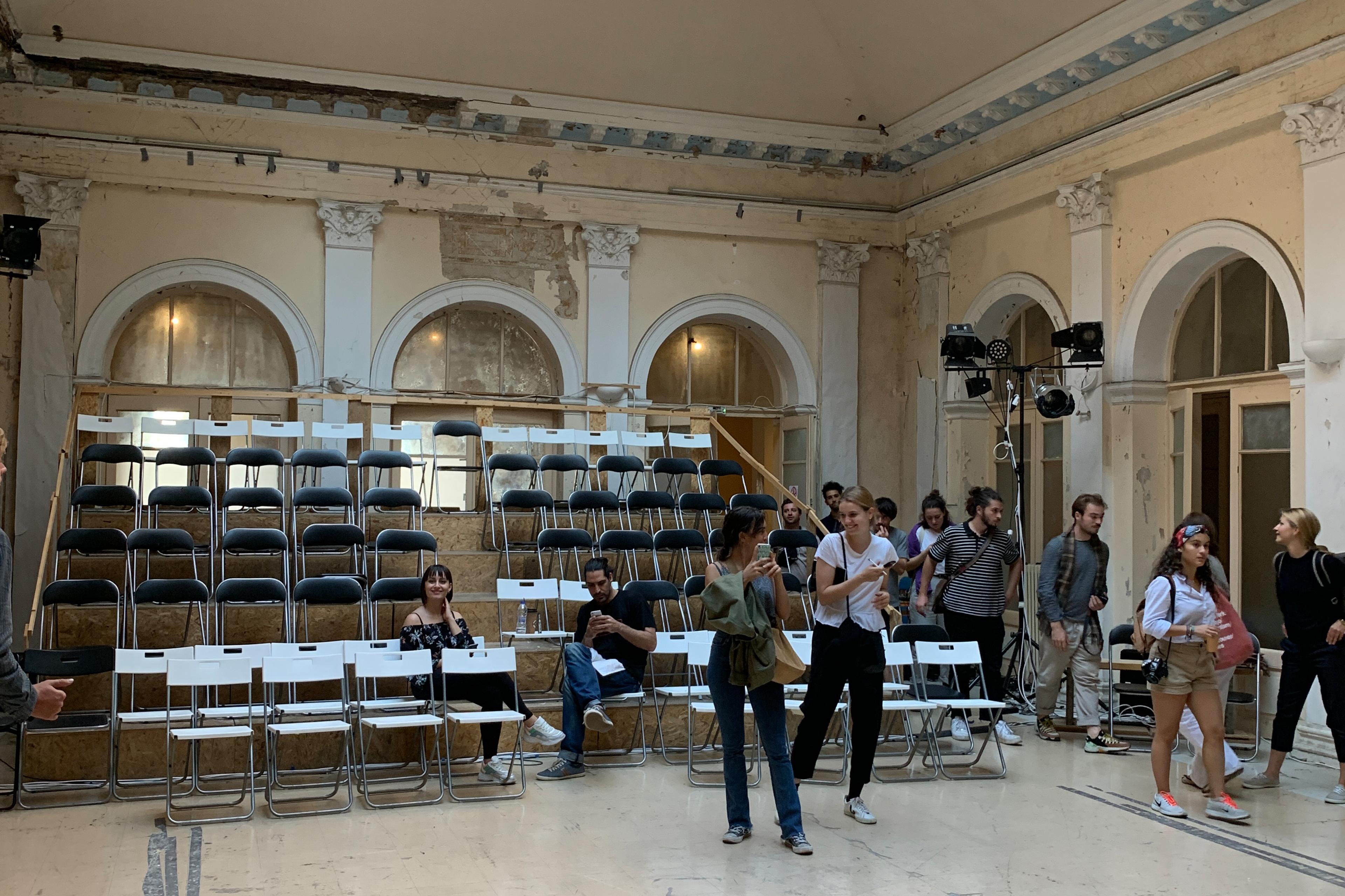 The format of documentation of the seminar week were individual mobile phone video diaries of 1 minutes per day to reflect on Newrope in Athens. Each student produced 5 videos of 60 seconds each during the course of the week. For the final performance we collectively produced a 15 minute. Each one of them showed the one for him or her most meaningful minute. For this, they chose the setting within Communitism themselves and one after the other handed over a portable projector. By choosing different rooms, sizes and positions, the screening became a very divers spatial experience including the whole building.