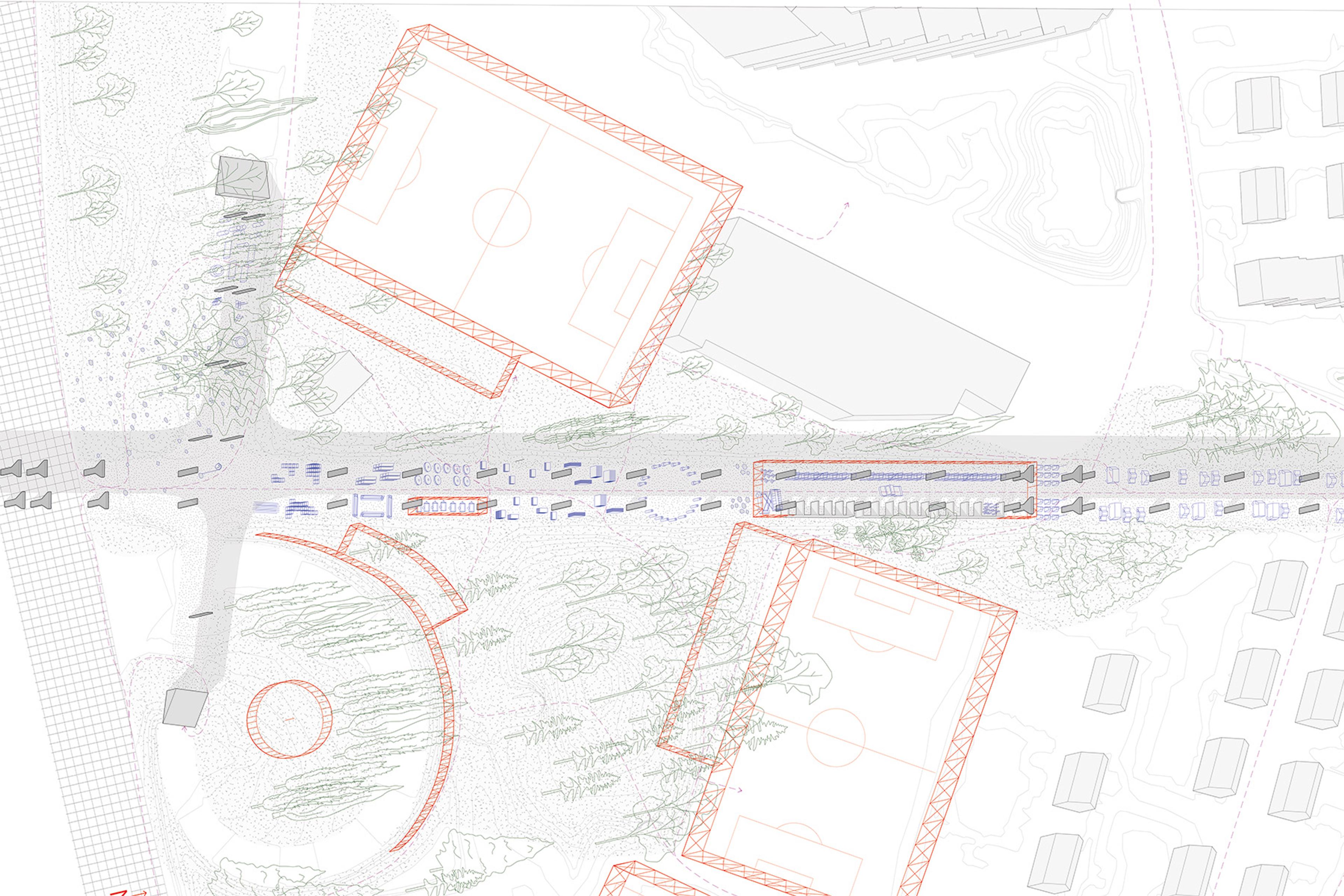 In our studio we were investigating a series of ongoing densification projects: A new elderly home, different large scale housing and mixed-use projects, and the largest school building of the canton. We were interested in the question how each of these projects tries to contribute to the district under transformation and which values they take into account. How can we invite them to think beyond their plots? Do we need more plans for that or can the direct investment in adaptive infrastructures introduce the necessary tensions and a common ground to raise the collective ambition? This raises the question: how can design contribute to creating the right environment for current practices and urban frameworks to think differently – namely to take multi-scalar socio-environmental issues seriously and give voice to worldviews that challenge current models of development and growth? How can the large-scale densification of a district consider the entanglement between different world views, value systems, species, the societal and the environmental?