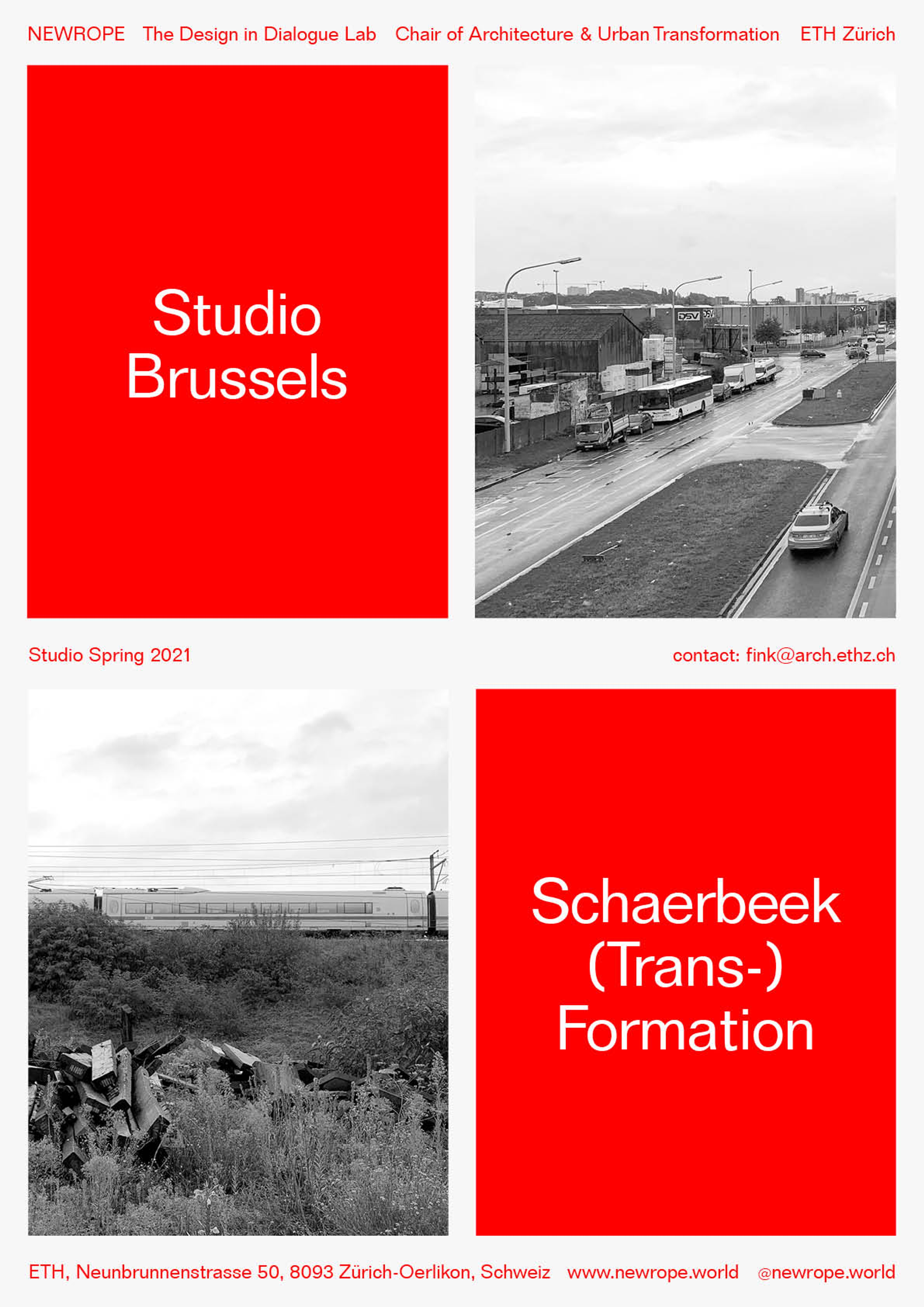 “Studio Brussels – Schaerbeek (Trans-)Formation” is the first design studio of the Newrope Chair for Architecture and Urban Transformation at ETH Zurich. With our Chair we investigate cities and territories that exemplify, or foreshadow, the changing urban conditions that define Europe. We look for friction points, where worlds collide and energy is unleashed. Within these complex realities we are looking as architects for possible entry points, ways of engagement and of ways to reposition ourselves.
